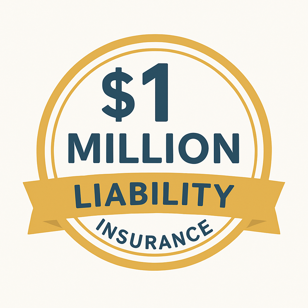 We carry $1 million in liability insurance, providing you with peace of mind and financial protection.